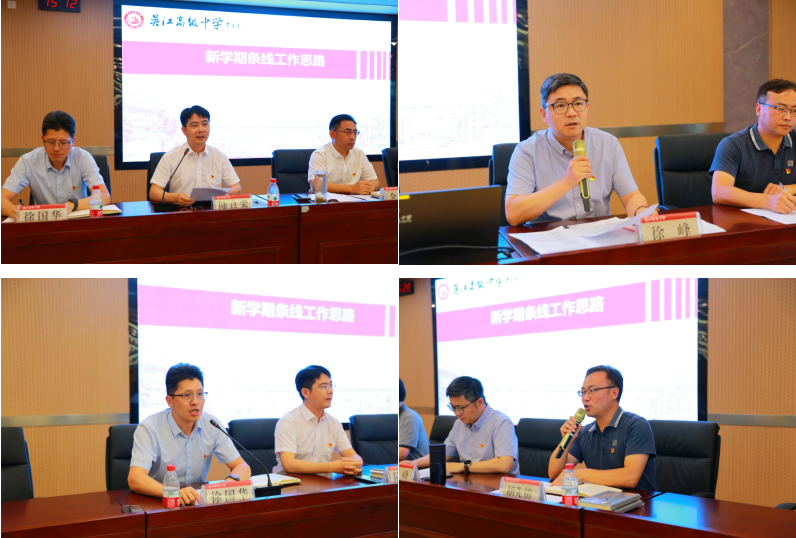 副校长徐峰就党政办工作、群团(社团活动)、关工委、文明校园创建、高三年级管理分享新学期工作思路。