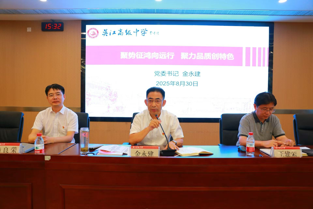 吴江高级中学将全力以赴办好人民满意的教育,以建设高品质特色高中为核心抓手,引领广大教师弘扬教育家精神、强化师德师风建设、自觉担当教育使命,在新征程上奋力谱写新时代高品质高中发展的崭新篇章!