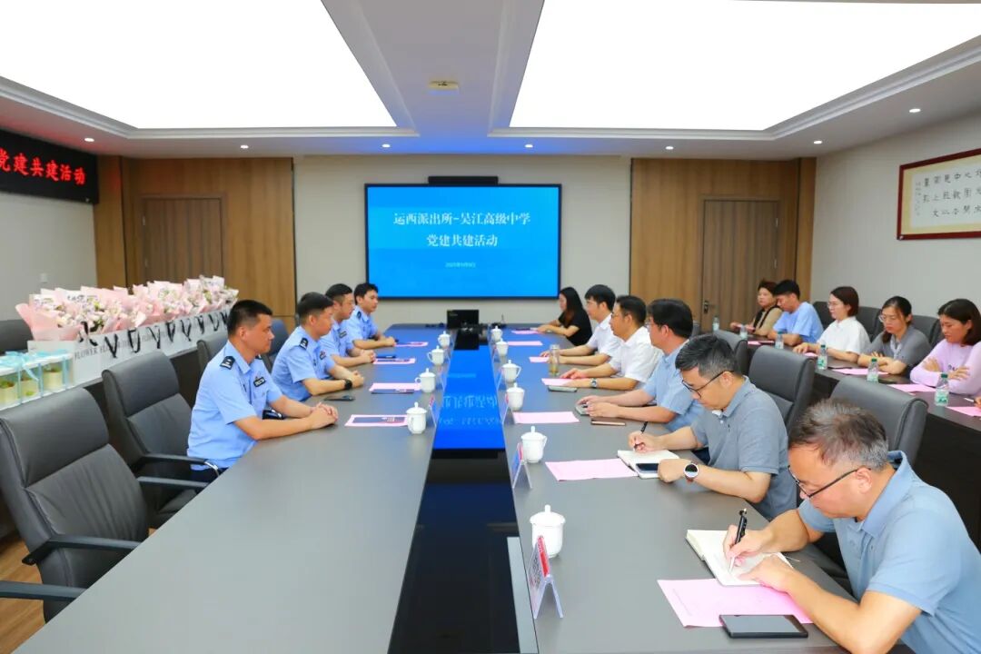 2025年9月9日上午,运西派出所一行在所长李忠琪的带领下,来到吴江高级中学开展党建共建暨教师节慰问活动。双方在行政楼二楼会议室举行了亲切座谈,共话警校情谊,同庆教师佳节。