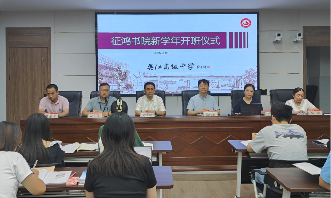 丹桂迎秋,征鸿纳贤。为扎实推进青年教师培养工作,赋能教学、笃行师志,全面提升2021-2025年新入职教师的专业核心素养与教学基本能力,2025年9月16日晚,吴江高级中学在有恒楼二楼正式启动征鸿书院开班仪式暨专项培训活动。党委书记金永建、副校长陆良荣、副校长胡先锦、德育处主任曹惠平、教务处主任吴蕾出席本次活动,本次活动由教务处副主任王光宇主持。