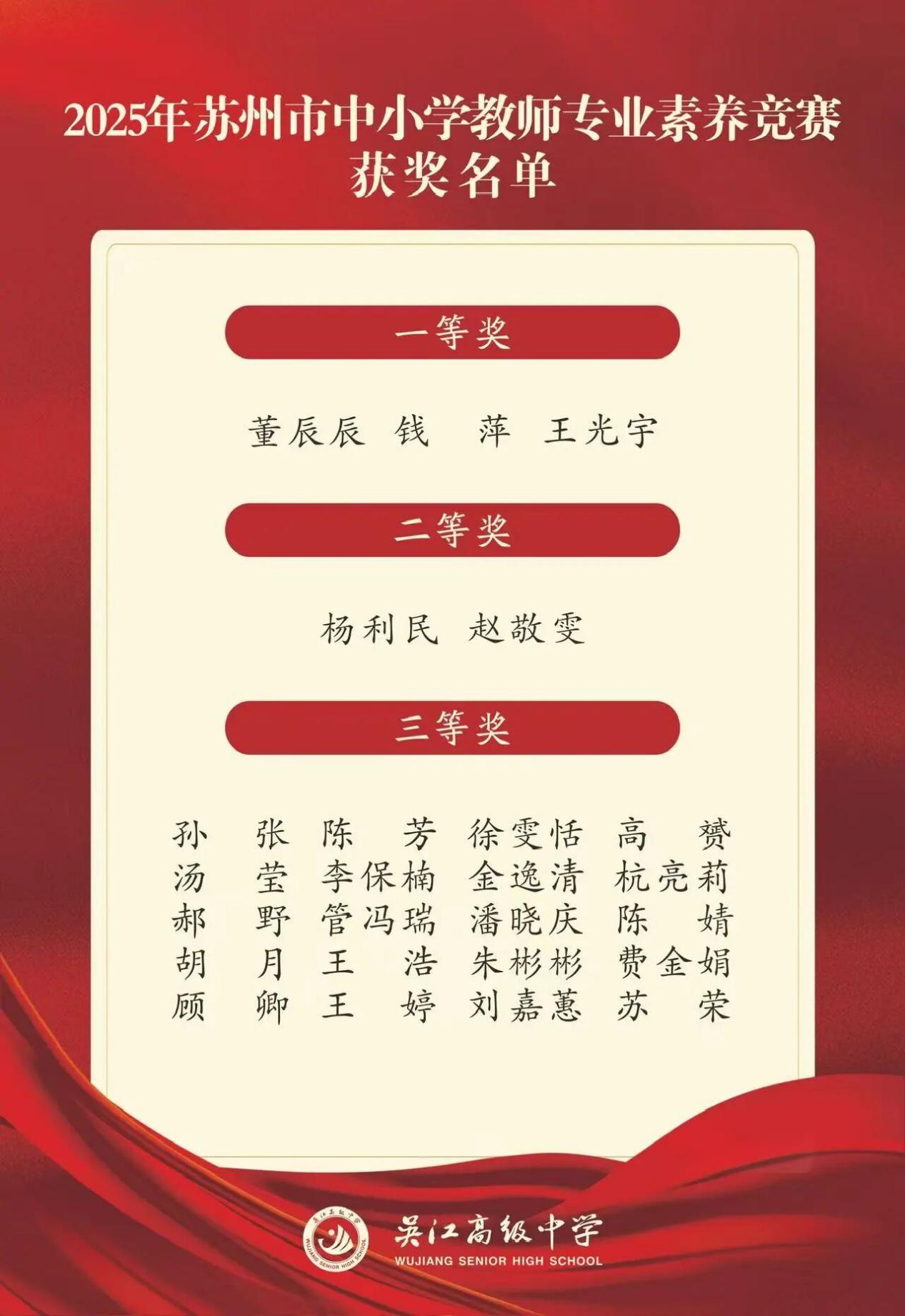 时维九月,暑气渐消,杏坛之上,墨香沁人。苏州市中小学教师专业素养竞赛结果揭晓:一等奖3名,二等奖2名,三等奖20名。热烈祝贺征鸿园所有上榜教师,你们以扎实学识、精湛素养崭露头角。