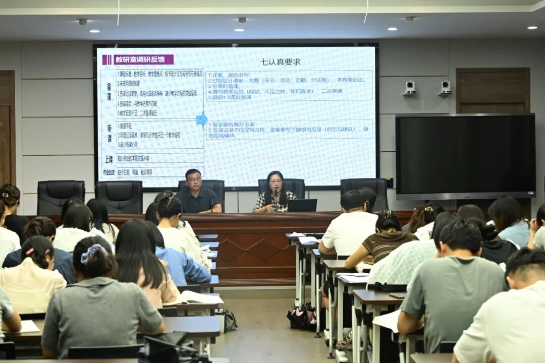 会议伊始,王光宇老师反馈了我校青年教师在吴江区教育局教研室调研中的表现:各学科教研员对课堂亮点给予充分肯定,如教学设计巧、师生互动活,尽显扎实功底;同时指出,青年教师在教学 “七认真”工作上仍有提升空间。