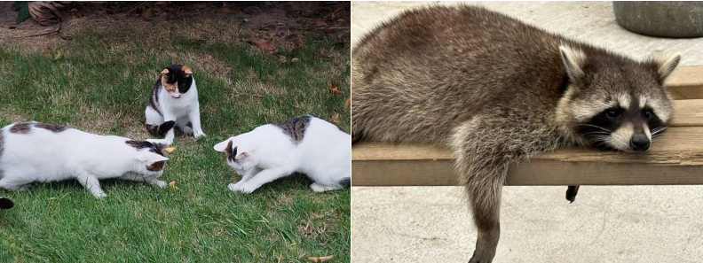 更有灵动可爱的小生灵为这份欢乐添彩——慵懒地蜷在草丛中的小猫,见有人靠近便轻轻蹭着裤脚,惹得同学们纷纷放缓脚步,掏出随身的小零食温柔投喂。不远处的浣熊展区里,几只圆滚滚的小家伙正捧着食物打闹,蓬松的尾巴摇来摇去,憨态可掬的模样让同学们的快门声此起彼伏。