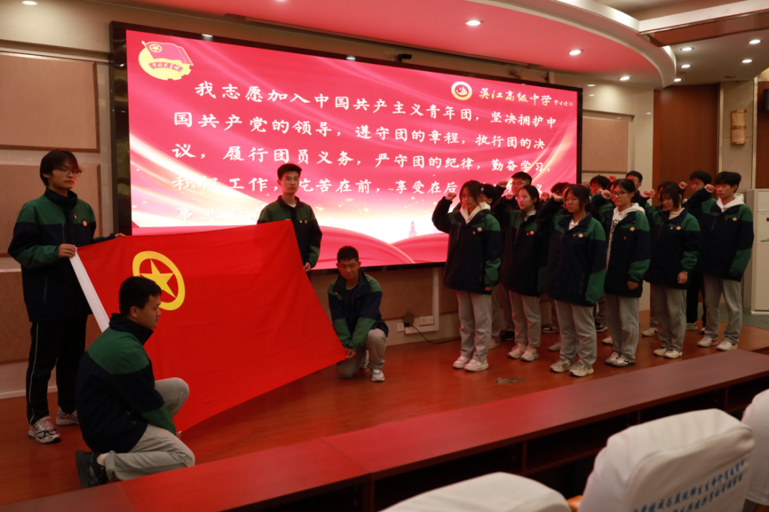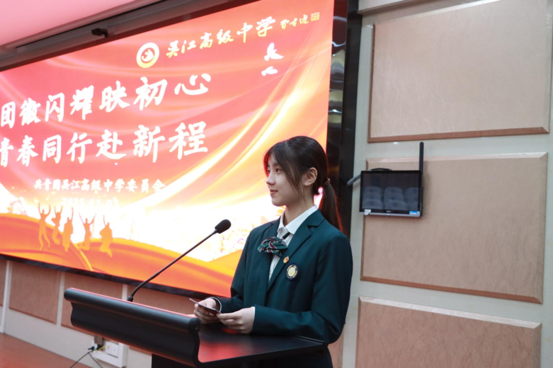 入团仪式是中国共青团组织发展新团员的重要环节,既承载着庄重肃穆的仪式分量,更蕴含着浸润心灵的教育深意。2025年11月3日,吴江高级中学高三报告厅内,一场关于初心、传承与使命担当的青春盛典正缓缓拉开帷幕。此次入团仪式由学生团员何慕言主持。