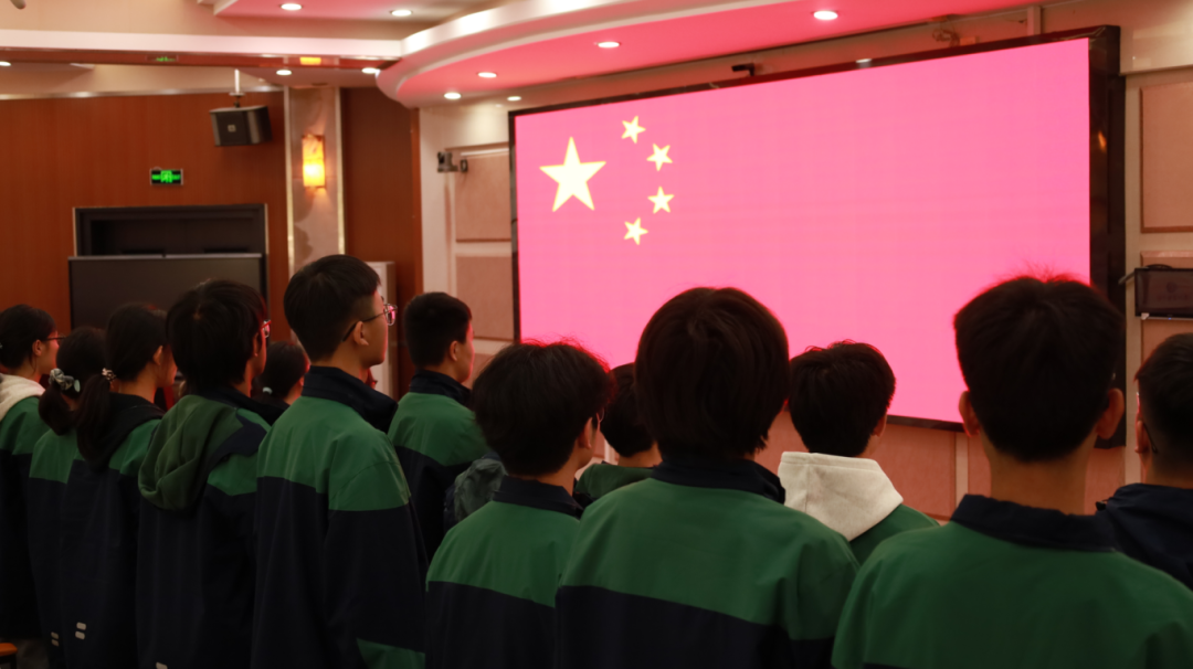 全体成员肃然起立,《中华人民共和国国歌》激昂的旋律在报告厅内回荡,这不仅是百年征程的历史回响,更是青春力量与伟大时代的隔空对话,每一个音符都叩击着征鸿学子的心灵。