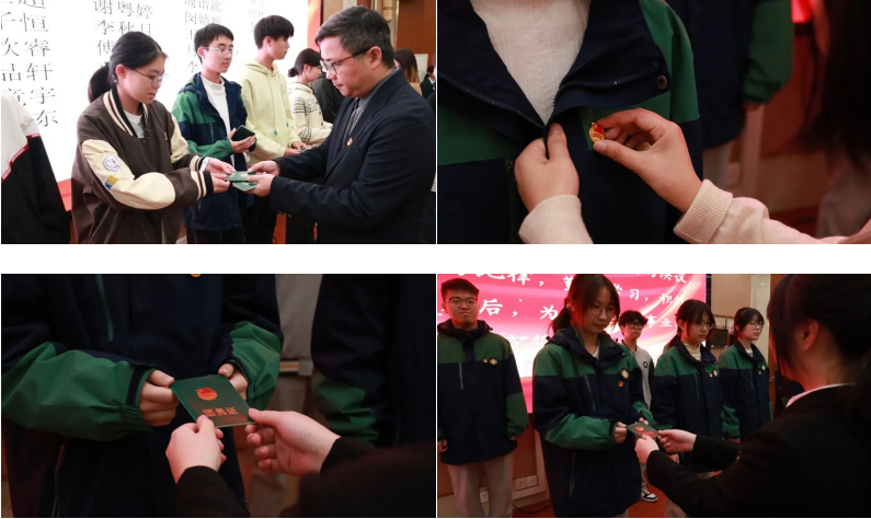 党组织代表、团组织代表、党员代表、老团员代表为新团员佩戴团徽、颁发团员证,小小的团徽闪耀着光芒,鲜红的团员证承载着期望,这不仅是一份荣誉的传递,更是一份使命的交接。