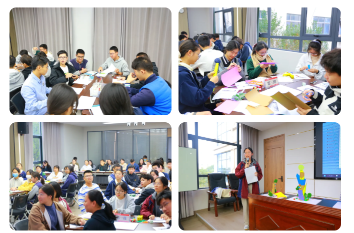 第二节由震泽中学张瑞恒老师带来《“筑”造未来:建筑中的想象力》。本节课以“从概念到实物”的完整创作为主线,引导学生穿越古今,系统梳理了人类对未来建筑的构想脉络。在此基础上,学生分组扮演设计师、绘图师、发言人,协作将天马行空的创意转化为具象的纸质模型,并利用AI工具生成逼真的建筑效果图,实现了抽象思维与动手实践、艺术设计与前沿科技的深度融合。