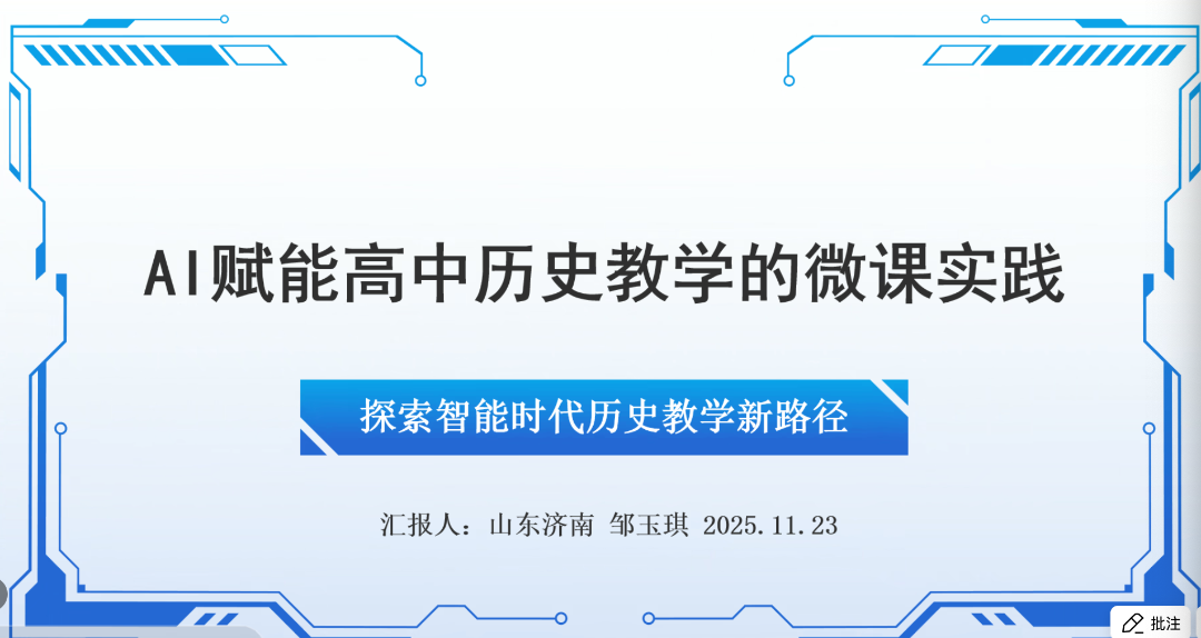 山东省济南市莱芜第十七中学邹玉琪老师结合AI技术,探究AI微课在高中历史教学中的应用。