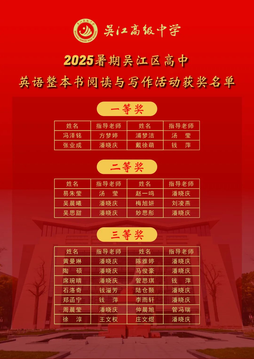 再次向所有获奖同学表示热烈的祝贺!这份荣誉,既是对他们暑期潜心阅读、勤于笔耕的最佳褒奖,也是对指导老师们辛勤付出、悉心教诲的真诚回馈。