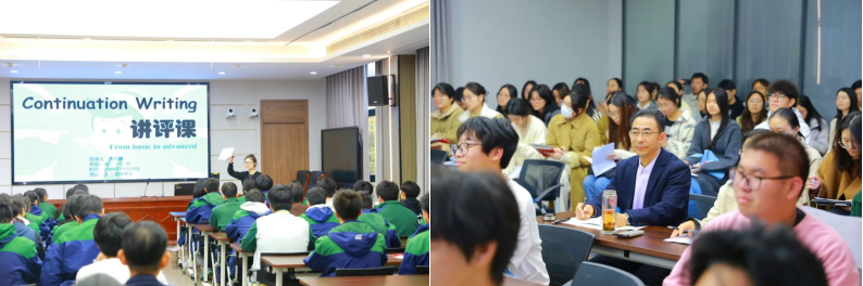 苏州大学英语教育教学研究中心主任王海贞教授对本堂课给予充分认可。她指出,本节课逻辑脉络清晰、教学环节循序渐进,通过精准有效的引导,助力学生实现了从“掌握学习内容”到“习得学习方法”的深度跃迁,充分彰显了优质课堂的教学实效。同时,王教授对吴江高级中学长期以来在苏州大学学生见习、实习等实践培养工作中给予的大力支持与悉心指导,表达了诚挚的谢意,并期许未来能进一步深化高校与中学的协同育人机制,拓展合作维度、丰富合作内涵,共促教育教学质量提升。