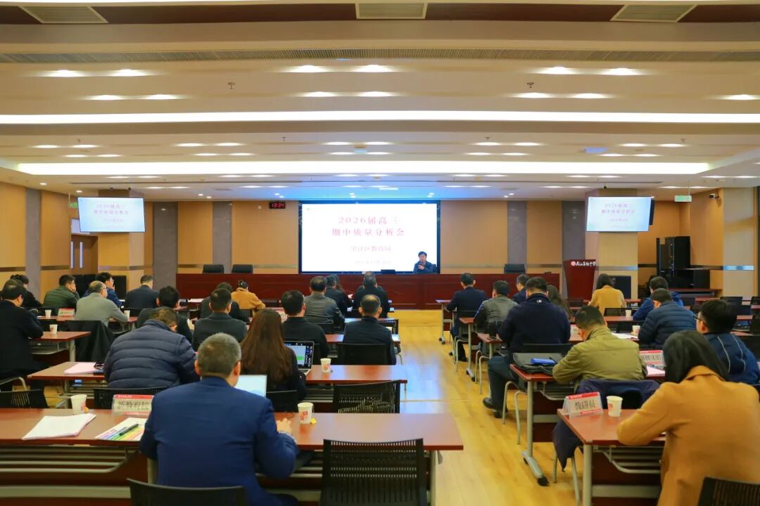 11月26日,吴江区2026届高三期中质量分析会议在我校召开。会议聚焦期中考试数据深度分析,交流分享有效教学管理经验,共同谋划下阶段复习备考工作策略。会议由区教研室副主任徐建东主持,区教育局副局长顾萍、区普教科科长沈志伟及全区各高中教师代表出席会议。各高中校书记、校长、分管校长及高三年级教务主任参加了会议。