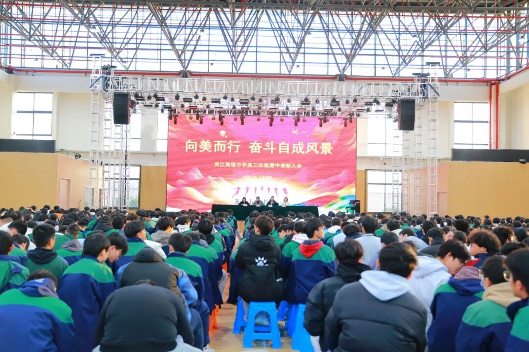 2025年12月8日,吴江高级中学高三年级“向美而行,奋斗自成风景”期中表彰大会如期启幕。全体高三师生齐聚一堂,共赴荣誉之约,静听成长絮语,深悟美育赋能成长的磅礴力量。