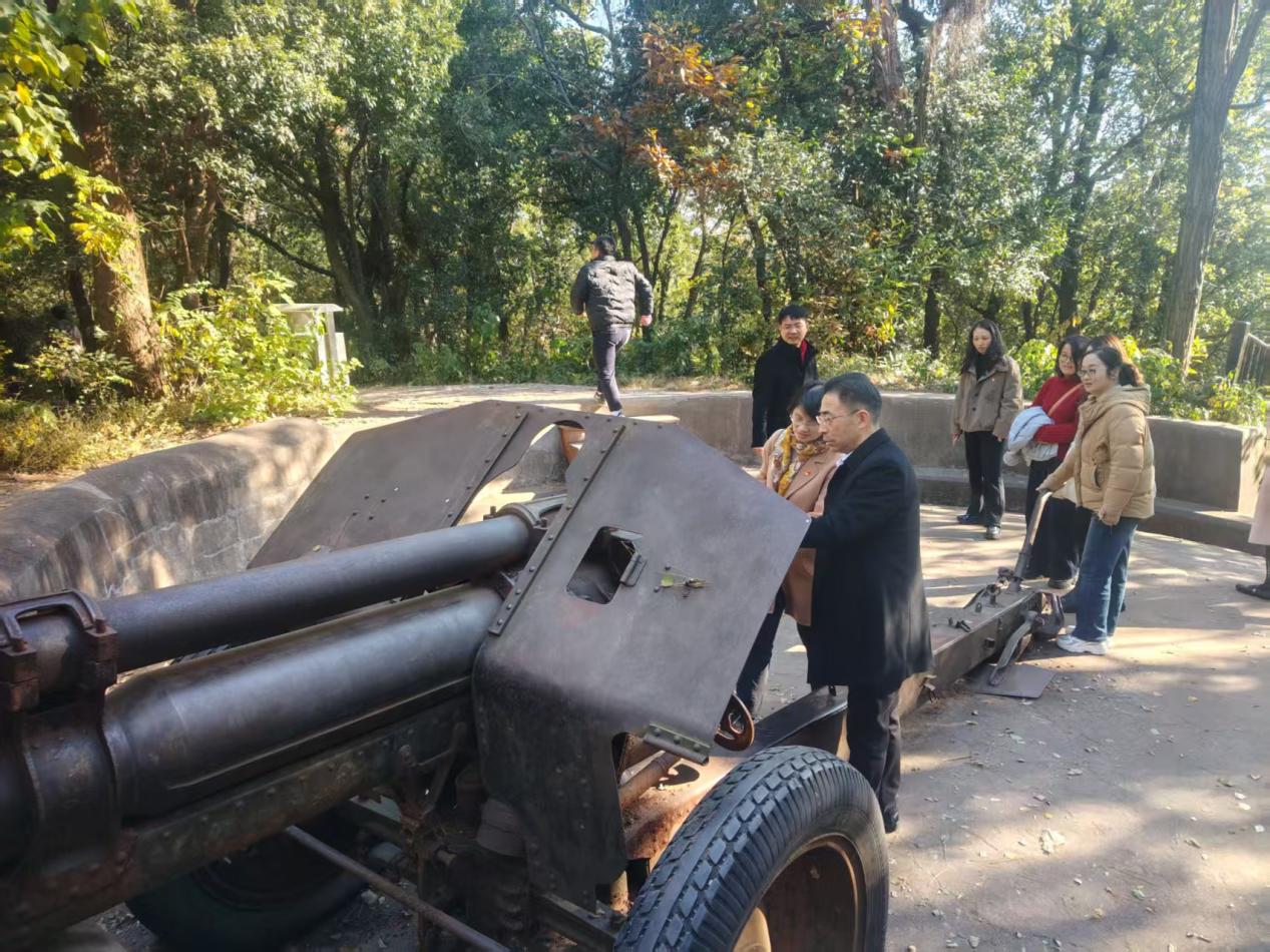 随后,队伍行至江阴要塞旧址。在曾经硝烟弥漫的战场遗迹上,一门门历经风雨的巍峨古炮静静矗立,仿佛历史的见证者。党员同志们实地观摩,感受昔日江防要塞的雄浑与战略地位的重要,从“打过长江去,解放全中国”的豪迈气概中,体悟共产党人攻坚克难、夺取胜利的坚定意志。