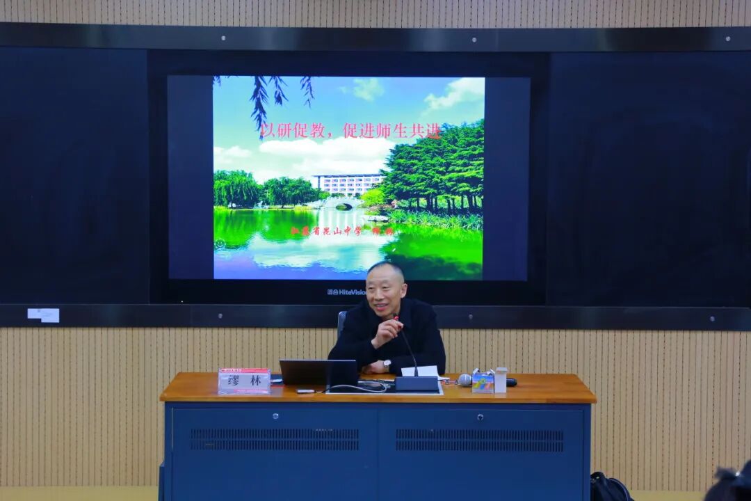 随后,缪老师带来题为《以研促教,促进师生共进》的专题讲座。缪老师结合自身多年的教学与研究经验,从“问题链教学”的实施策略、教研活动的组织与深化、教师专业发展路径等方面进行了系统阐述,强调教学应立足学生思维发展,以研促教、以教促学,实现师生共同成长。讲座内容充实、案例生动,为在座教师提供了宝贵的理论指导与实践启示。