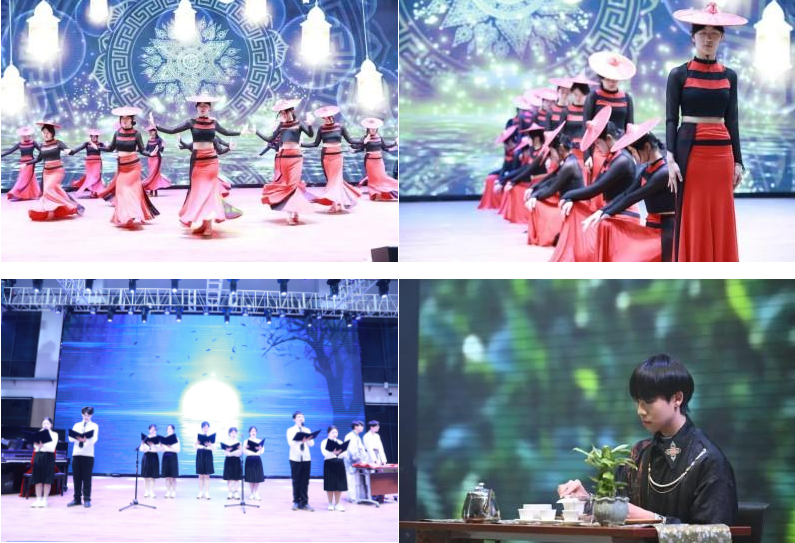 傣族舞《醉翩跹》以灵动舞姿演绎民族风情。演朗社《月光下的中国》以深情朗诵传递家国情怀。茶道《松风听雪》让传统文化在茶香氤氲中浸润心灵。