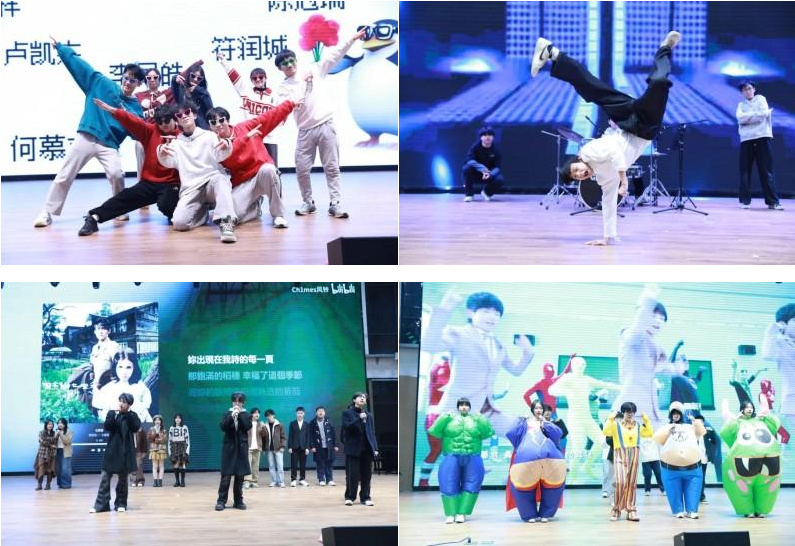 声屿社团《New Boy》唱响青春昂扬朝气。诗词吟诵《蓼莪》与爵士舞《Hot sauce+sheesh》兼顾古典雅韵与现代活力。