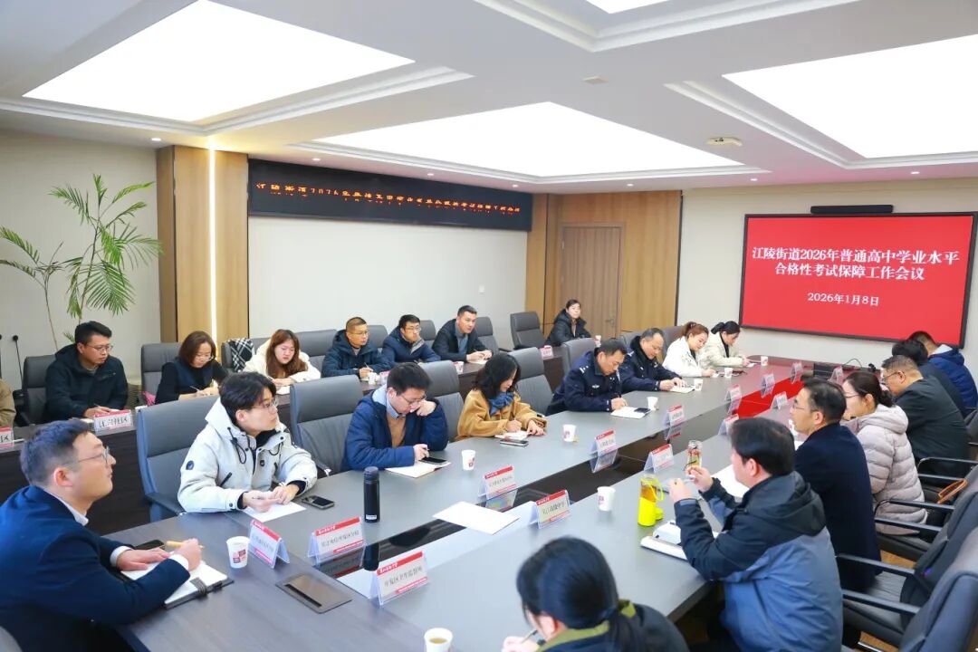 为了确保考试顺利进行,为广大考生营造良好的考试环境,提供优质的护考服务,1月8日上午,江陵街道2026年普通高中学业水平合格性考试保障工作会议在我校召开。江陵街道办事处副主任费家萍出席会议并讲话,开发区相关部门负责人、吴江高级中学考点负责人、相关科室负责人及社区(村)党组织书记参加会议。