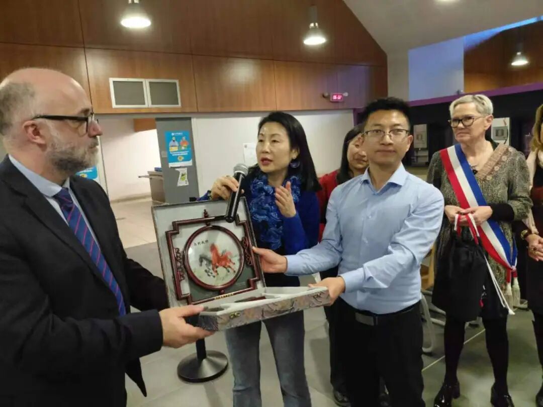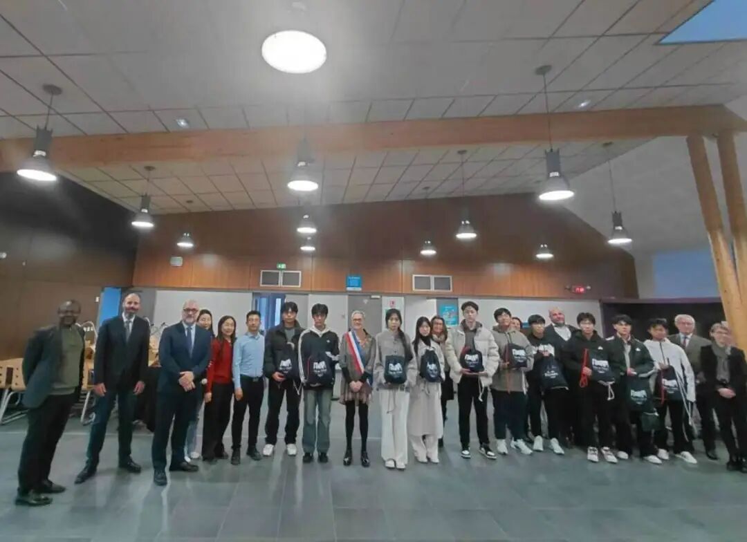 抵达日内瓦,师生一行前往费迪南比松中学,欢迎仪式上双方互赠礼物,结伴相识,互动交流。