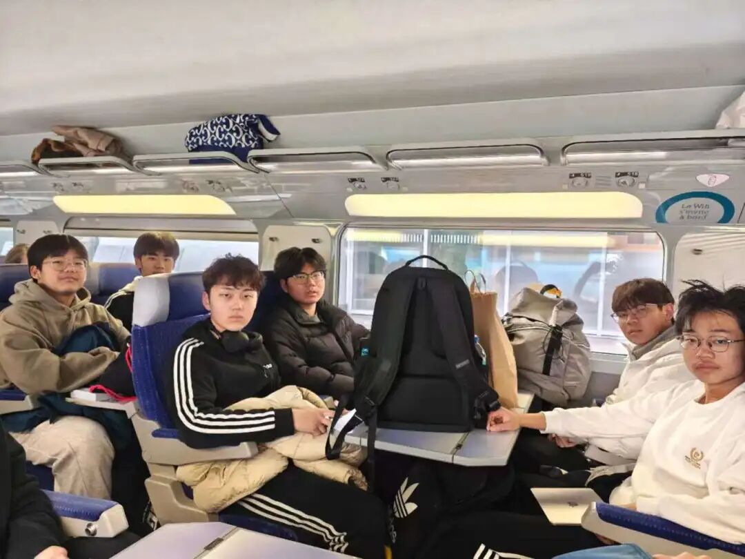 乘坐列车从阿尔卑斯山下的格勒诺布尔驶向浪漫之都巴黎,开启了文化艺术探索之旅,窗外风景飞驰,学子们心中充满期待。